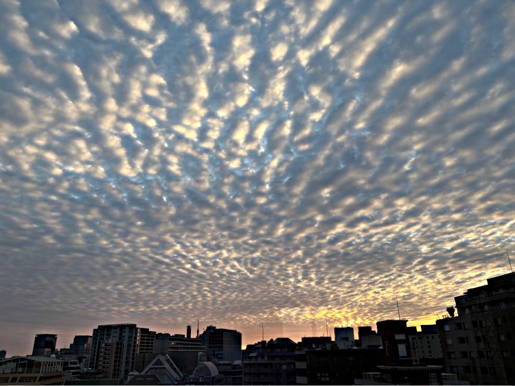 2025年9月23日 うろこ雲かな?と思いました。秋の雲には「うろこ雲」「いわし雲」「さば雲」「ひつじ雲」があるのを知りました。