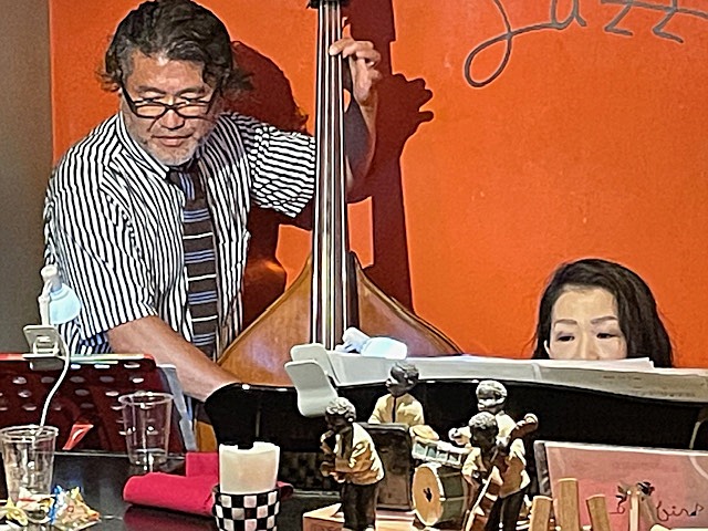 特別ゲスト 山口真文(ts) 生田さち子(pf) 河野撮影 山口真文(ts) 河野撮影 マヌエラは今年5月末日でお店が閉店しました。そこで、代わりにライブの会場として新規に選んだのが表参道のJazz Birdです。Jazz Birdは鈴木みよが経営するジャズのライブハウスです。東京に住んでる我々にとっては、馴染みのライブハウスです。 来年以降もJazz Birdで大場東京ライブを開催予定だと言っています。 そんな訳で、大場ライブの掲載サイトが今後は、本サイト「ジャズにまつわる話」になりました。 こんなページもあります。 ⇒ 台湾の大場知之訪問 (2024/10/12) ■ ■ ■